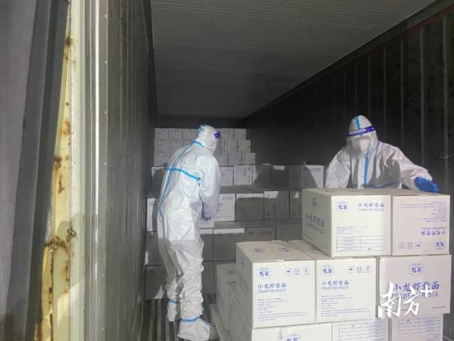 “愛心馳援,香港加油!粵港同心,抗擊疫情!”3月17日上午10點,湛江國聯(lián)水產(chǎn)一輛載滿649件預(yù)制菜的貨車駛出總部大門,馬不停蹄趕往湛江港集裝箱碼頭,爭取以最短的時間運抵香港。